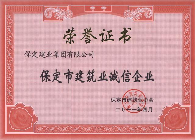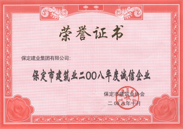 2010年度保定市建筑業(yè)誠信企業(yè)