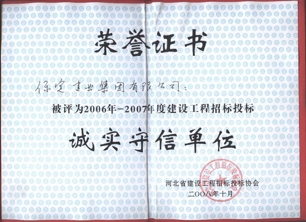0607省招投標(biāo)誠(chéng)實(shí)守信單位