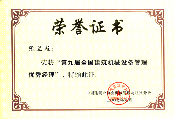 張?zhí)m柱同志以他杰出的工作業(yè)績(jī)被各級(jí)領(lǐng)導(dǎo)機(jī)關(guān)授予:全國(guó)、河北省、保定市建筑業(yè)優(yōu)秀企業(yè)經(jīng)理;優(yōu)秀企業(yè)家;優(yōu)秀共產(chǎn)黨員;優(yōu)秀黨務(wù)工作者;優(yōu)秀思想政治工作者;安全生產(chǎn)、工程質(zhì)量管理先進(jìn)個(gè)人;河北省優(yōu)秀經(jīng)理管理者;河北省建設(shè)系統(tǒng)勞動(dòng)模范;河北省勞動(dòng)模范等榮譽(yù)稱號(hào)