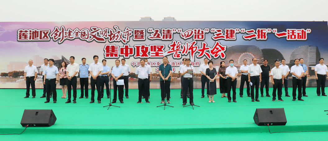 會議由區(qū)委副書記、區(qū)長、區(qū)創(chuàng)城工作指揮部指揮長劉曉鵬主持;區(qū)委黨委、宣傳部長、區(qū)創(chuàng)城工作指揮部副指揮長兼創(chuàng)城辦主任羅曉瑞向參會人員簡要通報了蓮池區(qū)創(chuàng)城工作進展情況并對下一步工作進行了安排;區(qū)委副書記、區(qū)創(chuàng)城工作指揮部常務(wù)副指揮長高國華宣讀了《保定市蓮池區(qū)開展“五清”“四治”“三建”“兩拆”“一活動”集中攻堅行動 推動“三整治五提升”文明城市創(chuàng)建實施方案》;區(qū)委書記、區(qū)創(chuàng)城工作指揮部政委董鳴鏑介紹了我市目前創(chuàng)城工作的開展情況,對本次行動要求作了具體闡述,并提出了更高的要求,希望全區(qū)上下團結(jié)一心,進一步弘揚“三有四干”的蓮池精神和“徹夜鏖戰(zhàn)、日夜兼程、晨起而作、只爭朝夕”的蓮池作風(fēng),共同為我市創(chuàng)建全國文明城市工作貢獻(xiàn)力量。