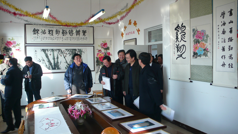 董事長張?zhí)m柱陪同建設(shè)局領(lǐng)導(dǎo)參觀十周年書畫展
