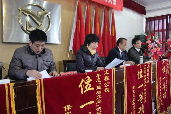 在隨后舉行的二零一一年度集團(tuán)表彰大會(huì)上,由黨委副書(shū)記閆雙彥宣讀了“二零一一年度建功立業(yè)表彰決定”,并由集團(tuán)公司領(lǐng)導(dǎo)對(duì)獲獎(jiǎng)單位頒發(fā)了錦旗和獎(jiǎng)狀。