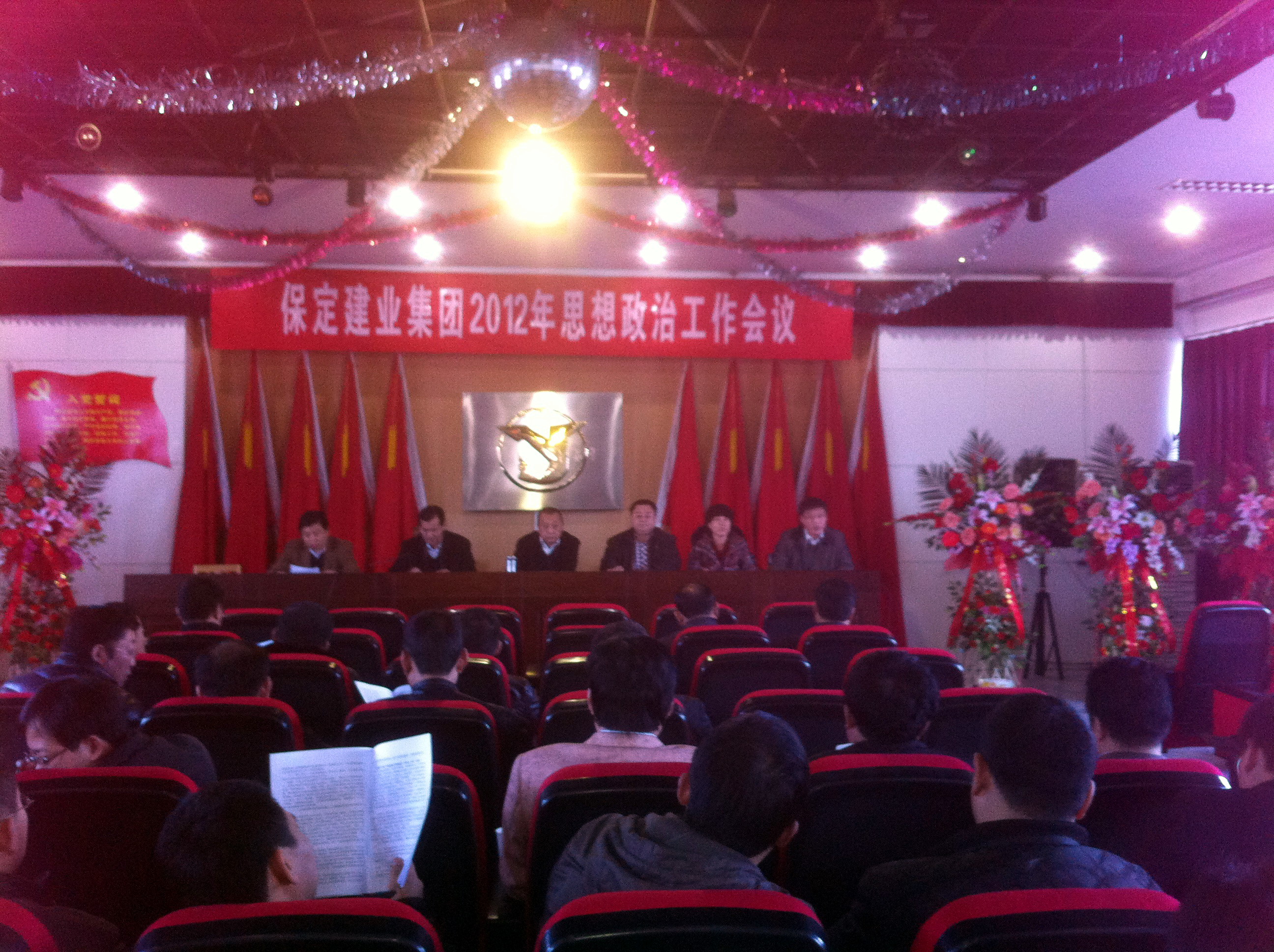 2012年3月14日,保定建業(yè)集團有限公司2012年思想政治工作會議在莊嚴的國歌聲中拉開了序幕,會議由黨委辦公室主任馬亞軍主持,集團各公司黨、政、工、團、婦、武裝、保衛(wèi)負責(zé)人參加會議。